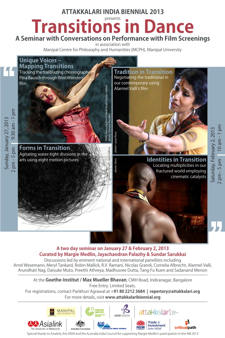 Connecting with the overarching theme ‘frames of dance’ at the Attakkalari India Biennial, Transitions: A Series of Conversations will engage with audiences to identify some of the key contexts both affecting, and emerging from contemporary performance practices, concerns, visions and experiences. The series will explore the added dimension of transitions, reflected by the transformation and blurring of frames. The 4 conversations are set against a backdrop of performance and cinematic practices, employing 14 films as catalysts. A panel totalling 15 connoisseurs and artistic practitioners will dialogue with audiences in an endeavour to explore shifting concepts and signifiers of performance through discussions.Read More